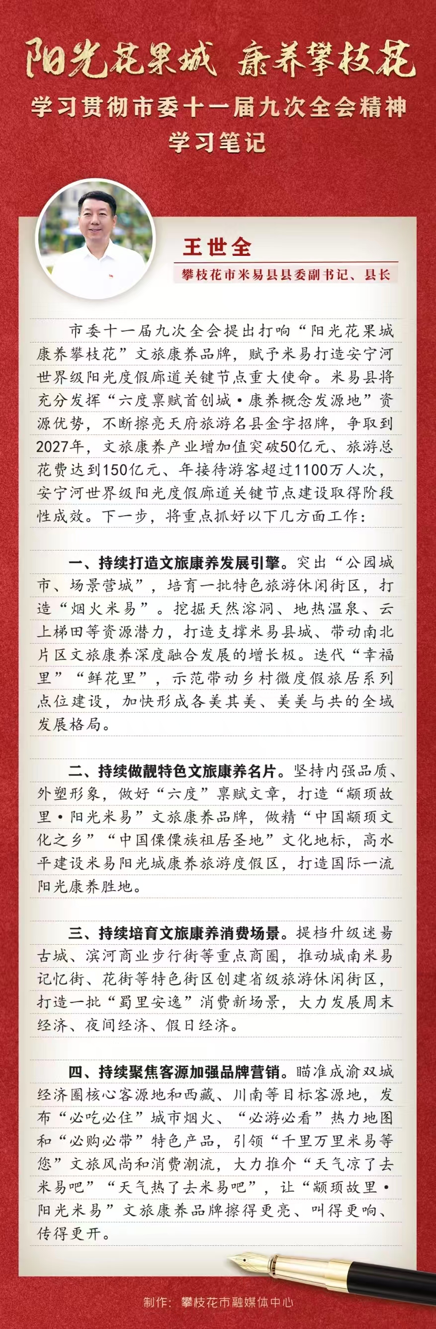 学习贯彻市委十一届九次全会精神系列访谈| 米易县县委副书记、县长王世全