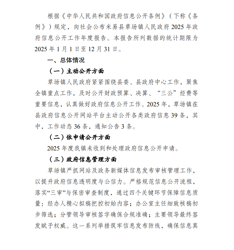 米易县草场镇2025年政府信息公开工作年度报告
