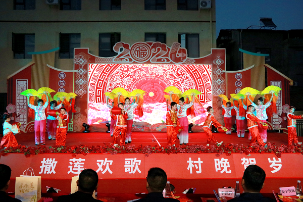 夜幕降临,“农民村晚”在欢声笑语中拉开帷幕。由各村(社区)群众自编自演的15个节目轮番登场,充分展现了新时代农民丰富的文化生活和积极向上的精神风采。晚会同时对2025年度为全镇发展做出突出贡献的先进个人、模范“新村民”及先进村集体进行了表彰,激励全镇上下见贤思齐,在新的一年里再接再厉,共同描绘撒莲更加美好的画卷。