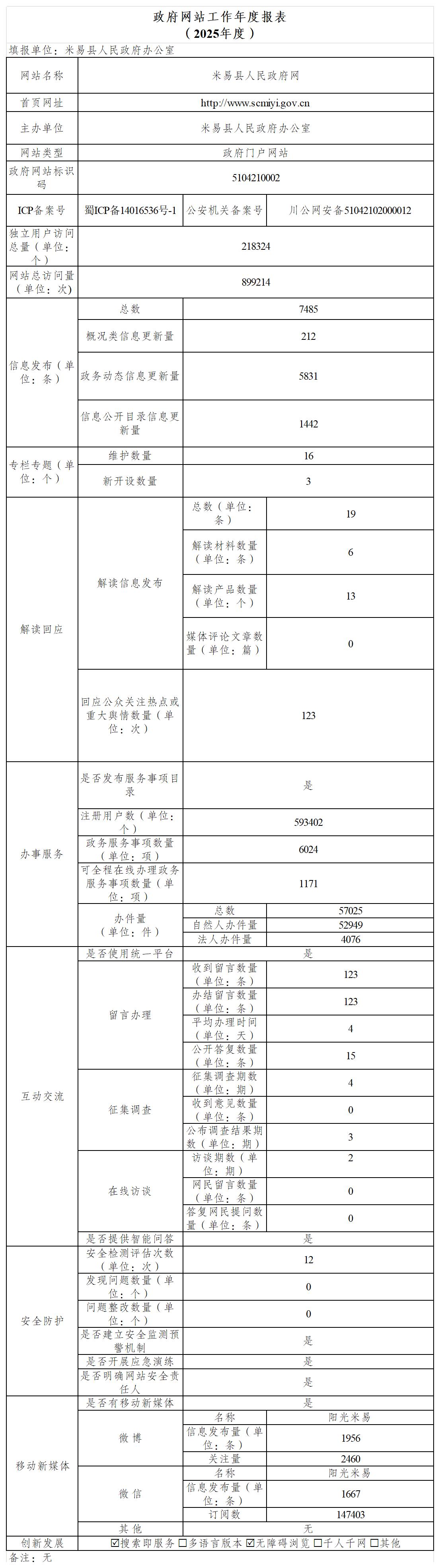 攀枝花市米易县政府网站工作年度报表(2025年度)