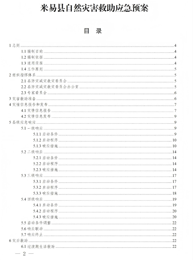 (二)县防灾减灾救灾委员会认为需要启动二级响应的其他事项。