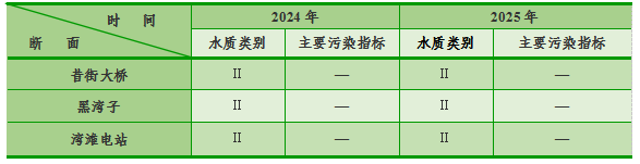 与去年同期相比:昔街大桥、黑湾子、湾滩电站水质类别无变化,水质类别均为Ⅱ类。