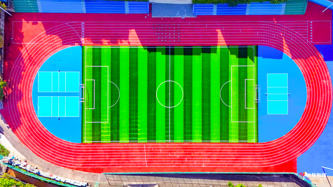 初三4班学生宋馨雨说:“第一次走进新操场,真的眼前一亮!色彩明快、氛围轻松,在这里运动心情都会变好。”同班同学李佳驹说: “设施齐全,踩在跑道上特别踏实”
