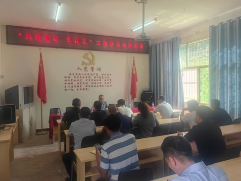 2025年10月14日,县自然资源和规划局党组书记、局长刘俊一行到派驻第一书记所在的普威镇板棚村开展“共同富裕·幸福说”三级联动巡回宣讲。板棚村全体村社干部参与了宣讲会。