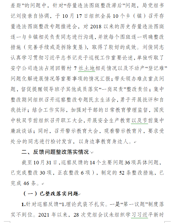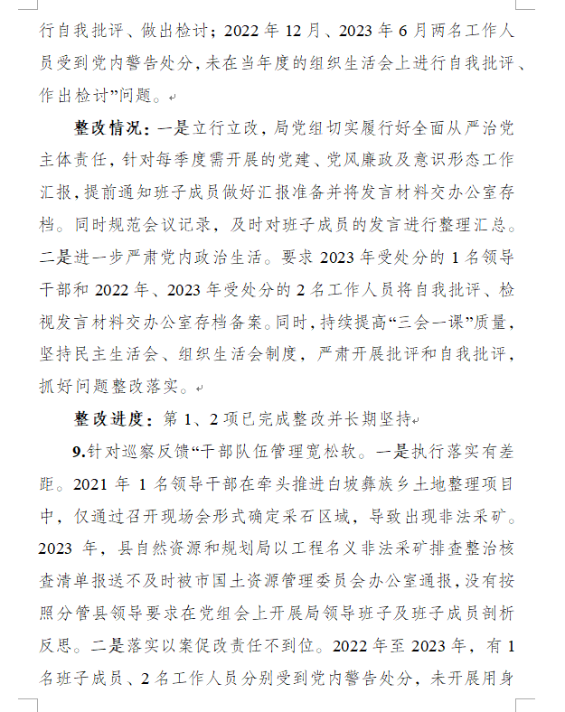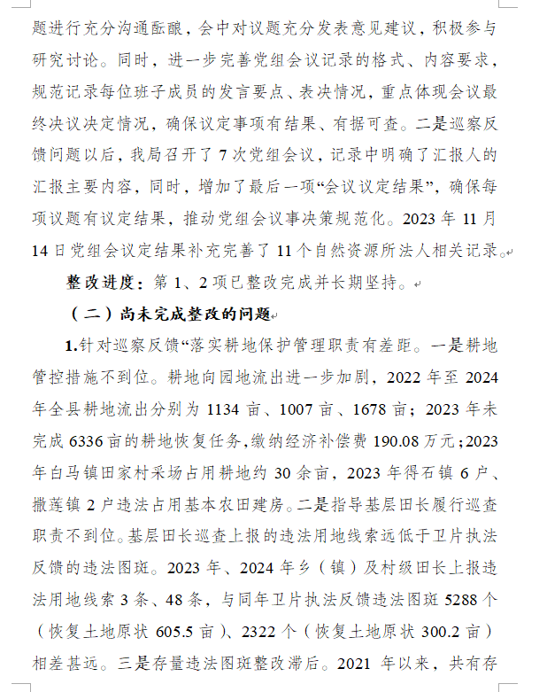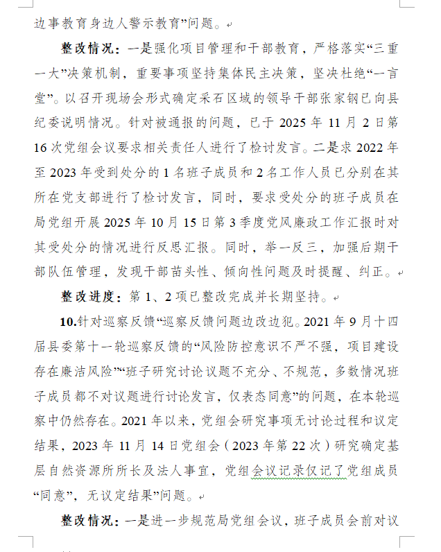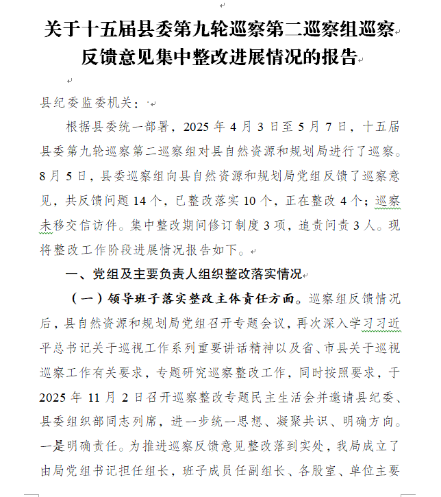 关于十五届县委第九轮巡察第二巡察组巡察反馈意见集中整改进展情况的报告