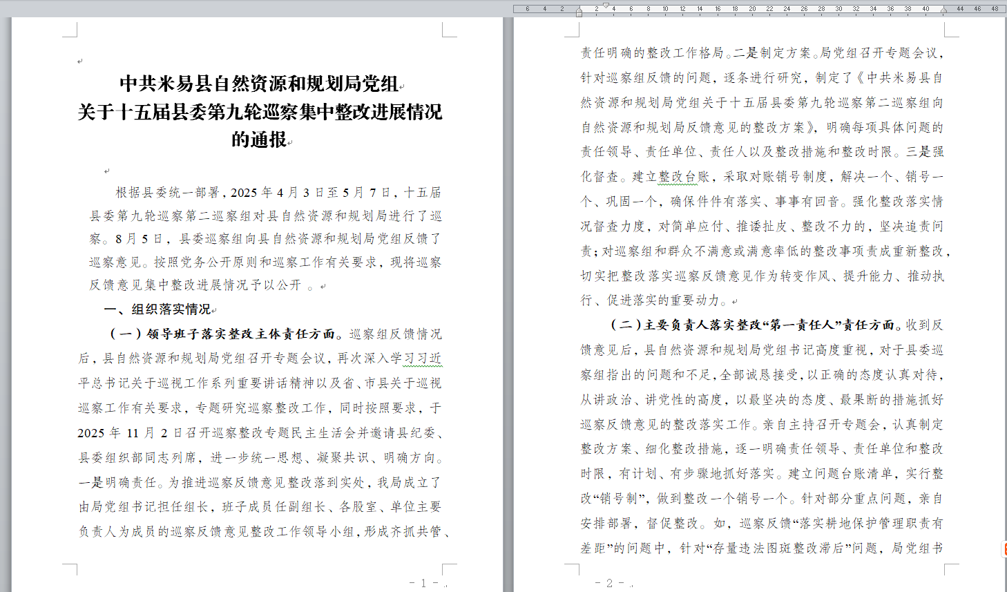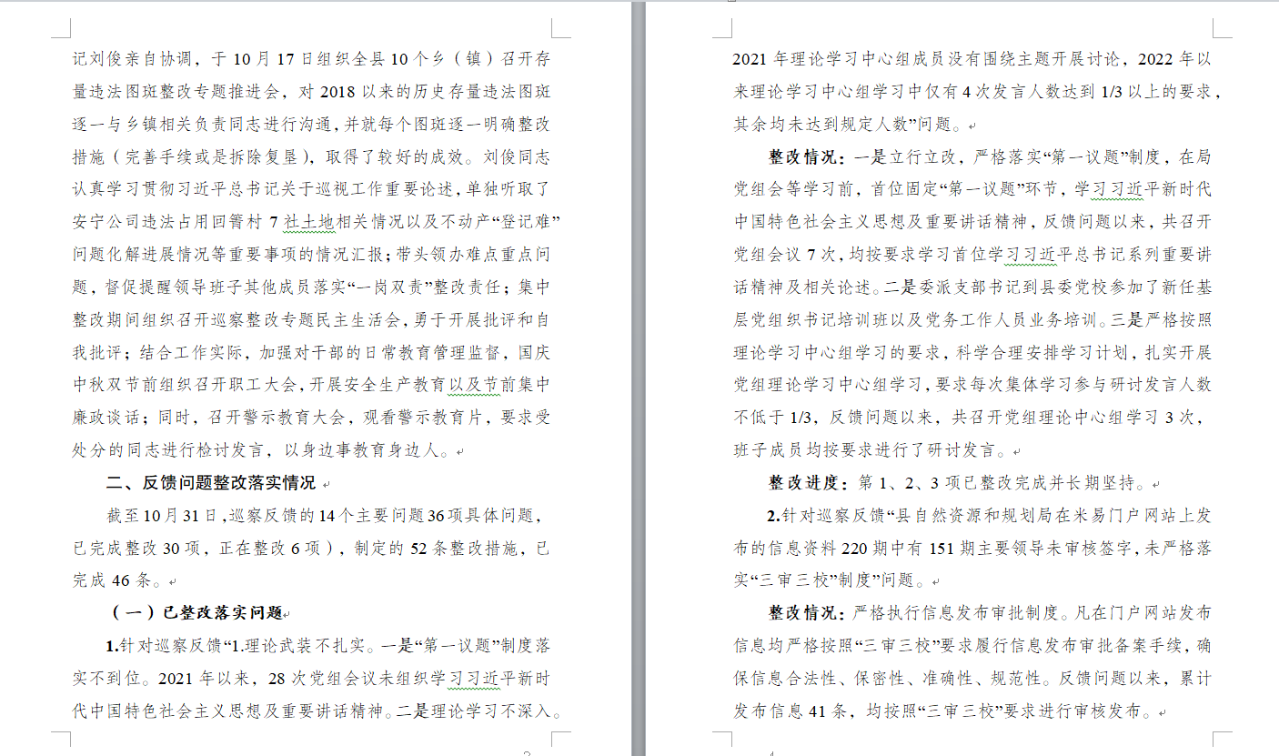 关于十五届县委第九轮巡察第二巡察组巡察反馈意见集中整改进展情况的报告