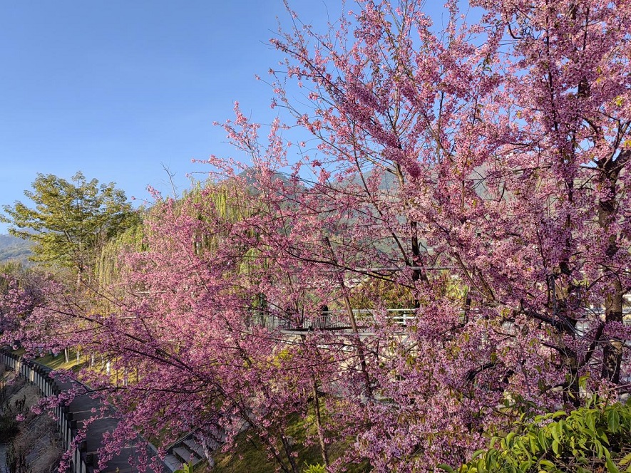 冬樱竞放绘雅景 暖意氤氲醉游人