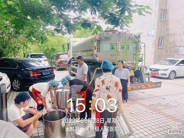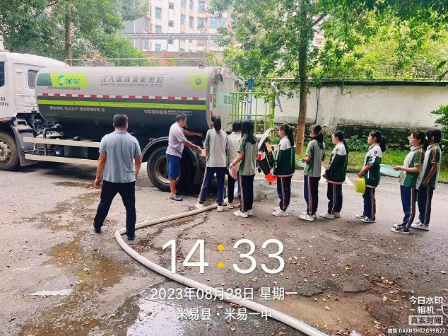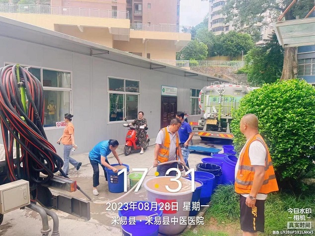 8月28日,米易县城生活用水输水渠因强降雨引发塌方,导致米易县城区大面积停水,医院、学校等特殊单位供水严重不足。县综合执法局在得知情况后,按照应急,紧急调度米易县家保环境科技有限公司4台水车,为米易县第一小学校、米易县第二小学校、米易县第一初级中学、四川省米易中学校、米易县中心医院、米易县中医医院、米易县妇幼保健院送去“及时水”,解决了学校和医院的燃眉之急。