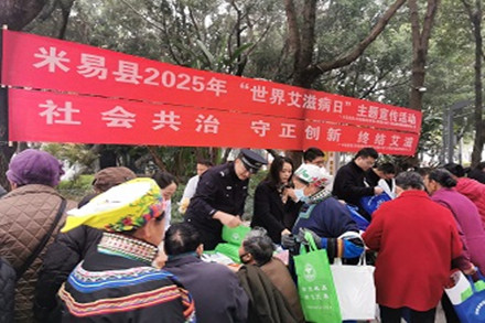 为进一步强化全民禁毒防艾意识,普及毒品预防与艾滋病防治知识,筑牢社会安全防护屏障。近日,县禁毒办联合县公安局、县卫健局等部门在米易县攀莲镇音乐喷泉广场,围绕“社会共治、守正创新、终结艾滋”主题,开展2025年“世界艾滋病日”宣传活动。