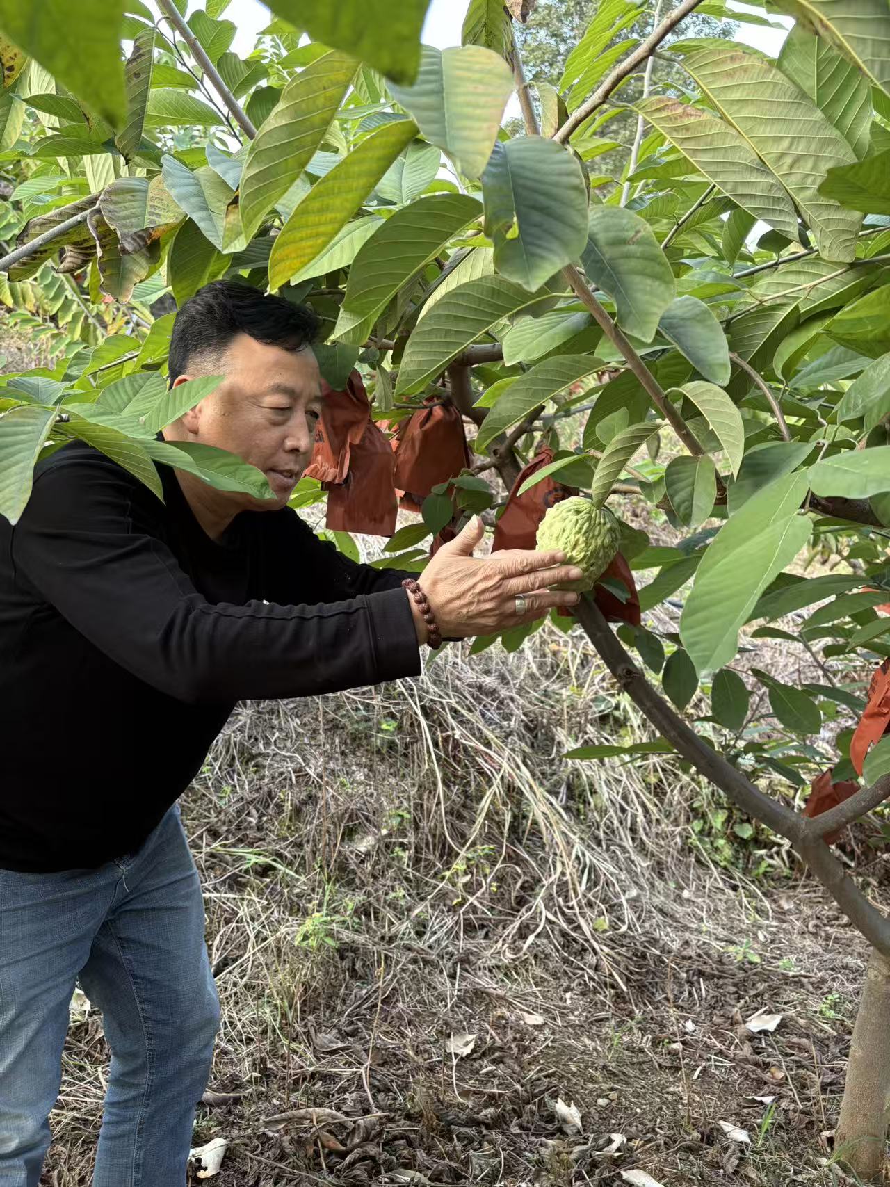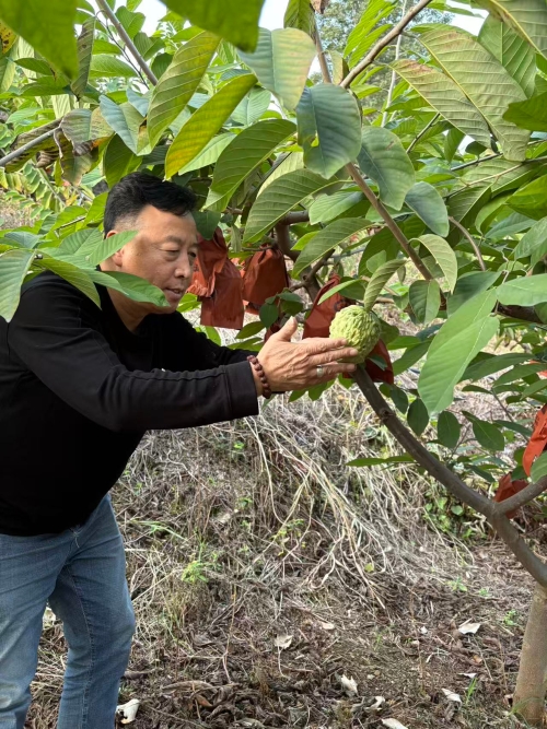 近日,对接经销商到水塘村释迦果基地实地考察释迦果种植、销售情况。