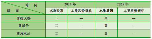 与去年同期相比:昔街大桥、黑湾子、湾滩电站水质类别无变化,水质类别均为Ⅱ类。