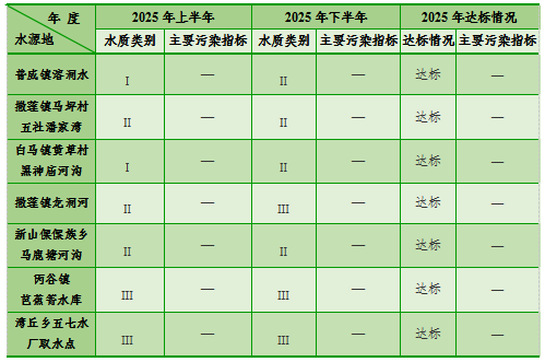 表4 米易县2025年乡镇集中式饮用水水源地水质类别表
