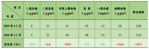 表3 米易县2026年1-2月年各项污染物同比表