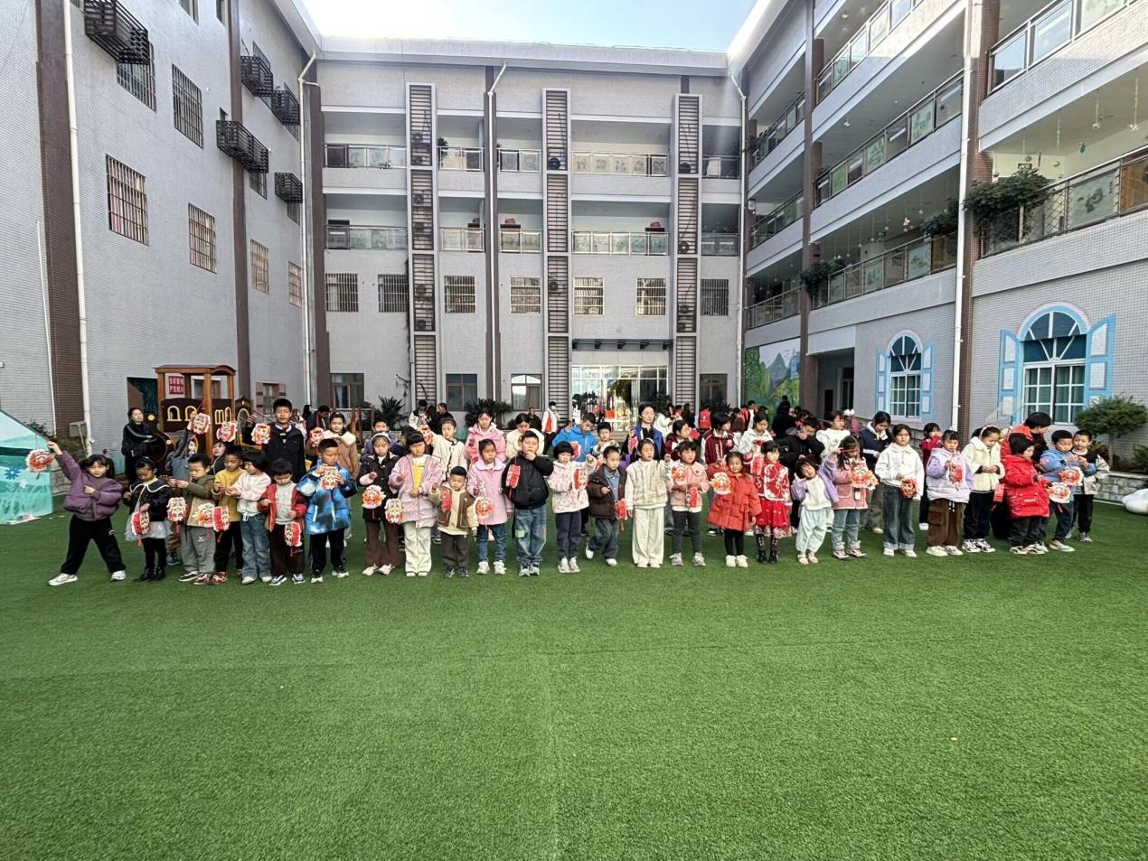 活动于上午9时正式启动,设置了开场迎新、才艺表演、亲子手工、趣味游园、集体生日会等丰富环节。在志愿者引导下,50余名儿童积极参与吹乒乓球、摸福字、趣味套圈等趣味游戏,现场气氛热烈、欢声不断;亲子手工灯笼制作环节,家长与孩子携手创作,针对家长未到场的儿童,志愿者化身“临时家长”全程陪伴,温情满满。活动现场工作人员为孩子们送上新年福袋、游园奖品及奖励贴纸,切实传递社会温暖。活动尾声,全体人员共唱生日歌、分享生日蛋糕,并拍摄集体合影,留下温馨难忘的新年瞬间。