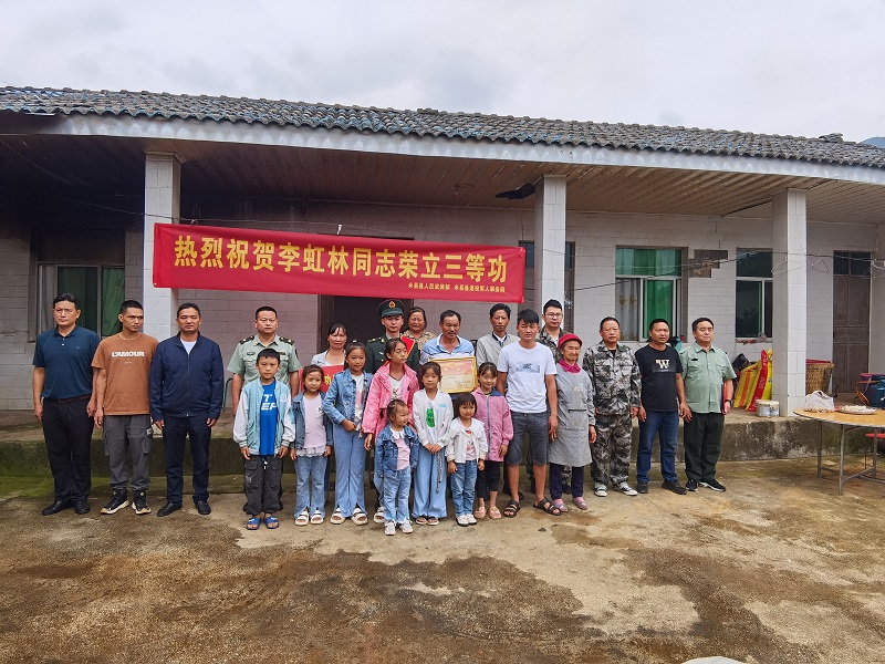 为了弘扬拥军优属光荣传统,营造关爱功臣模范的社会氛围,2023年8月29日上午,县人武部、县退役军人事务局以及普威镇组织干部10余人构成“送喜报队”,前往普威镇新舟村现役军人李虹林家中,为荣立三等功并探亲在家的李虹林及其家属送去喜报并发放奖励金。