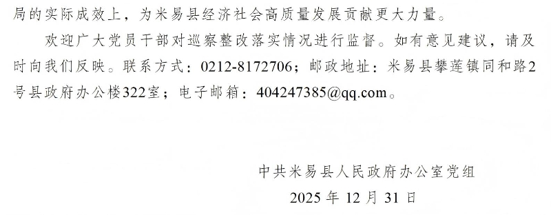 来源:县政府办公室 发布时间:2025-12-31 选择阅读字号:[ 大 中 小 ] 阅读次数: 0